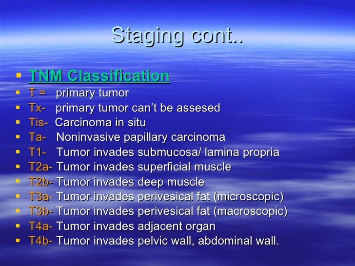 Cancer that begins in the transitional cells may spread through the lining of the bladder and invade the muscle wall of the bladder or spread to nearby organs and lymph nodes; this is called invasive bladder cancer. All material in this report is in the public domain and may be reproduced or copied without permission; citation as to source, however, is appreciated. National Cancer Institute. These stat facts focus on population statistics that are based on the U. Because these statistics are based on large groups of people, they cannot be used to predict exactly what will happen to an individual patient. To see statistics for a specific state, go to the State Cancer Profiles.