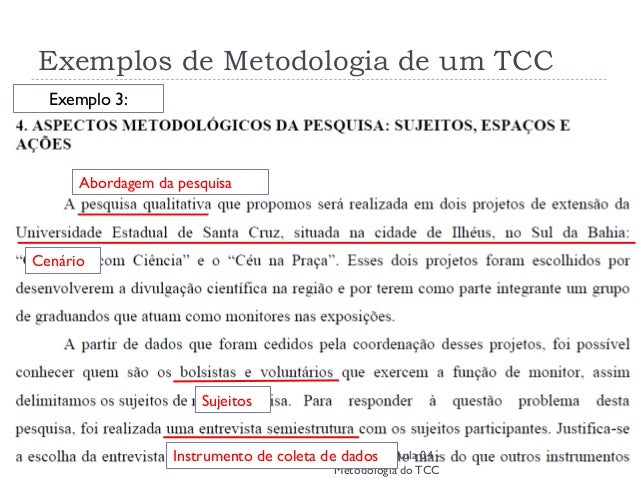 Quais são os cursos ministrados em inglês? - 25/6/ · Exemplos de Metodologia de TCC. Bem, não basta apenas dizer o que é, ou simplesmente como fazer, para que se fixe melhor. É preciso trazer um exemplo pronto de . De maneira ampla, pode-se categorizar o processo de elaboração da metodologia de pesquisa de um TCC em cinco etapas fundamentais: Definição da amostragem; Coleta de dados; . Objetivo da pesquisa. Veja como fazer uma metodologia escolhendo o tipo de pesquisa mais adequado ao seu TCC. Pesquisa exploratória. Quando um aluno opta por fazer uma pesquisa . modelo de metodologia no tcc
