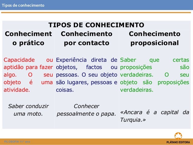 O que é um parágrafo no texto? - Assim, este aspeto subjetivo, a crença, é uma condição necessária para que haja conhecimento. Na verdade, é largamente aceite entre os filósofos desta área que o conhecimento é uma . O conhecimento técnico é fundamental para diferenciar você dos profissionais que não têm esse conhecimento em seus currículos e, claro, em suas mentes. A união entre uma boa . O conhecimento prático (praktische Erkenntnis) é aquele que se refere apenas aos fundamentos determinantes da vontade [1]. Ora, todo conhecimento é uma proposição verdadeira; um conhecimento prático é, portanto, uma proposição prática verdadeira. Segundo a Lógica [2], proposições práticas (praktische Sätze) “são aquelas que enunciam a ação pela . Como foi promulgada a Declaração dos Direitos Humanos?