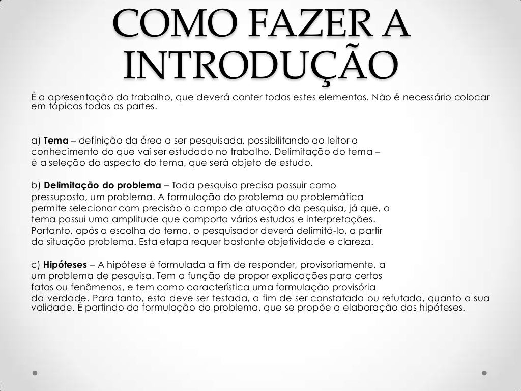 Por que o tratamento de saúde mental deve ser individualizado para cada pessoa? - Um artigo científico apresenta uma estrutura com a seguinte ordem: Título, Resumo, Objeto, Objetivo Geral e Objetivos Específicos, Justificativa, Metodologia, Introdução, Materiais e . 11/03/ · Além disso, o artigo deve seguir uma metodologia de pesquisa e conter uma estrutura lógica com introdução, onde o tema é introduzido para o leitor, um . 14/11/ · Resumo: texto breve onde o objetivo do artigo, a metodologia e os resultados alcançados devem ser expostos; Palavras-chave: características do tema que sirvam para . modelo de dissertação argumentativa